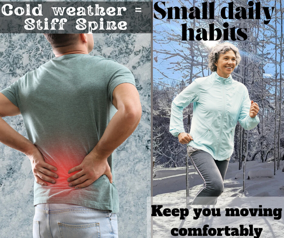 Cold weather causes muscles and connective tissues to tighten. Blood flow can decrease slightly in cooler temperatures, which means less warmth and flexibility in your joints and muscles. On top of that, we tend to move less in winter—shorter walks, more time sitting, and fewer outdoor activities. Things just move better when we are moving.